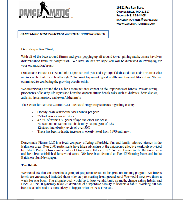 Dancematic Fitness is an innovative workout program created by Patrick Parker owner and Fitness Trainer. Patrick is a former decorated US military soldier who served in the Iraq War. After searching and trying to find ways to improve his own fitness regimen, he decided to explore a variety of fitness programs that would provide a total benefit to the body. His fitness regimen combines exercise which focuses on specific core areas of the body with extreme dancing that is fun and exhilarating. He has energized and assisted hundreds of clients with lifestyle changes. Patrick's program provides more than exercise routines. There is a motivational component that encourages a healthier lifestyle.