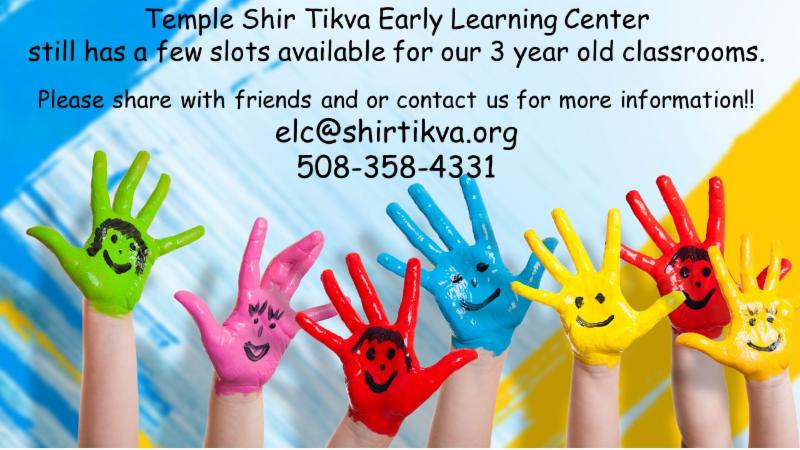 Early Shacharit, followed by Torah study, Saturday 8:30 a.m. Shabbat Yeladim (Tot Shabbat) - 1st Saturday of each month, 9:30 a.m.