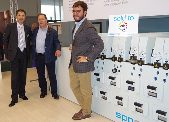 Spain-based Adamtec bought a six-station SPGPrints DSI digital UV-inkjet press to meet short-run demands from customers in the food, chemical, and auto industries. The 330-mm (13-in.) press features CMYK, white, and a digital primer. General Manager Jaume Crespo (pictured right with Carles Pastor, SPGPrints, and Francisco Hortelano, Adamtec), says, "From the trial results and the support from SPGPrints' technical people, it was clear DSI could give us the flexibility to offer variable data and the quality to deliver consistency and high-impact branding solutions on which our brand and customers depend. Another factor was the performance of SPG's inks, which gives us an opacity equivalent to screen printing and strong resistance needed for industrial situations." The press has standard intermittent LED pinning between each color station to ensure immediate curing and ink stability at fast speeds, and a chill drum to stabilize film substrates. Crespo adds, "With the acquisition...we will be able to print individualized labels in the same production run, which we believe is of great value to our customers, and therefore a strong growth area for us. Our automotive customers are seeking serialized battery labels and the ability to tailor information for each region."