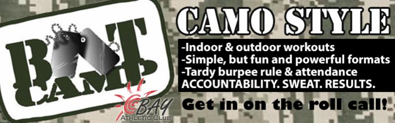 - OUTDOOR CAMO STYLE BOOT CAMP! THAT MEANS MORE CAMMRADERIE...NOT MORE BURPEES ;).