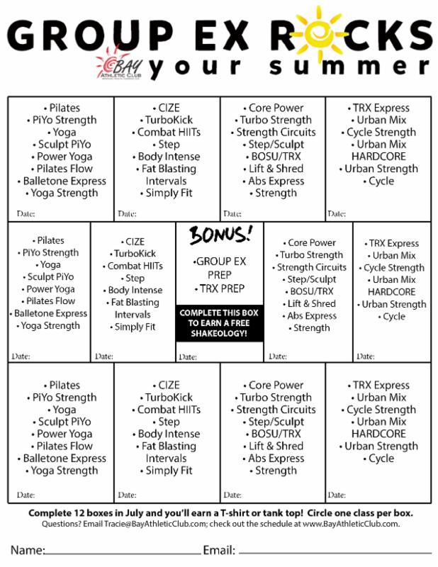 PS--GROUP EX ROCKS IS HERE! We've been offering this July game card for four years now because we know it keeps you accountable to your fitness and keeps you getting results. Plus, it's a fun way to get out of your comfort zone and try some new classes.