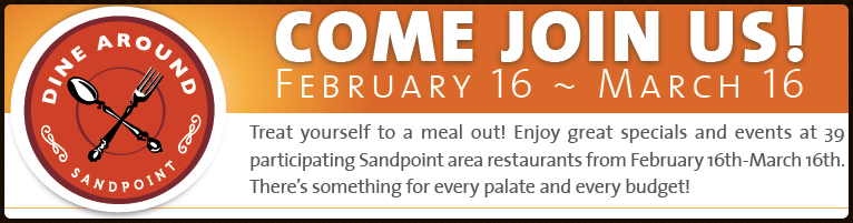 Looking for that special culinary delight or a unique out-of-ordinary place to go for a bite to eat? For something different or even just a good old-fashioned breakfast, burger or sandwich, look no further than Sandpoint, Idaho. Now through March 16th, 39 of Sandpoint's finest eating establishments are presenting Dine Around Sandpoint, a month-long culinary extravaganza featuring the talents of local Sandpoint chefs. There is something for every taste and budget.
