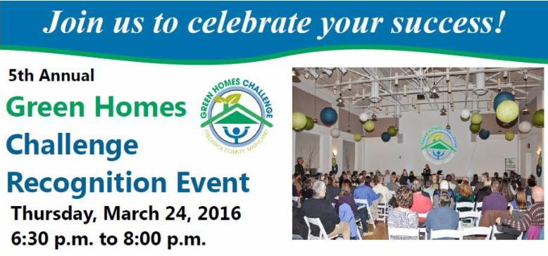 Frederick County officials and OSER staff will recognize Certified Households at the 5th annual Green Homes Challenge Recognition event on Thursday, March 24, 2016 at the Delaplaine Visual Arts Education Center.
