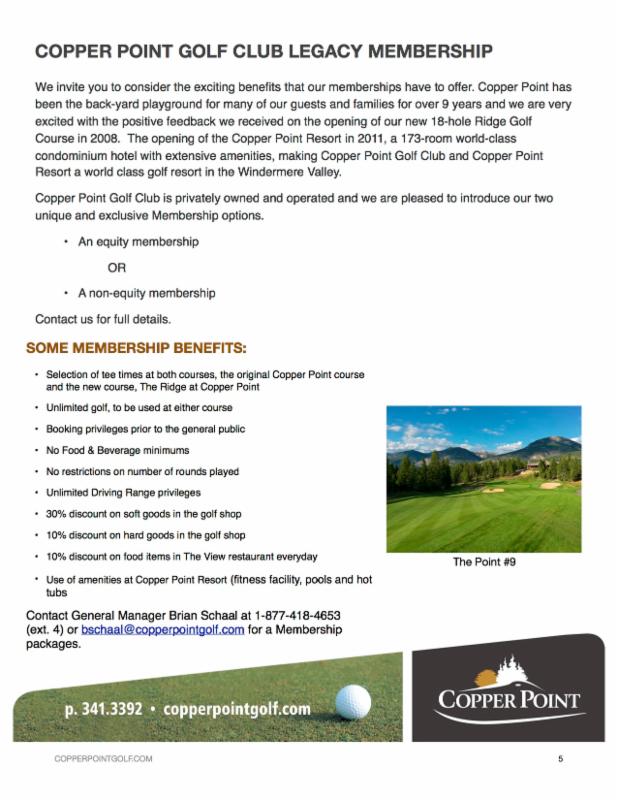 Membership Report As the new season is drawing near, we would like to share with you our Membership Opportunities for 2016. We have our Legacy membership opportunity as well as our NEW Shared Executive Memberships! These are a great way to get added benefits at Copper Point and enjoy unlimited golf all season! |