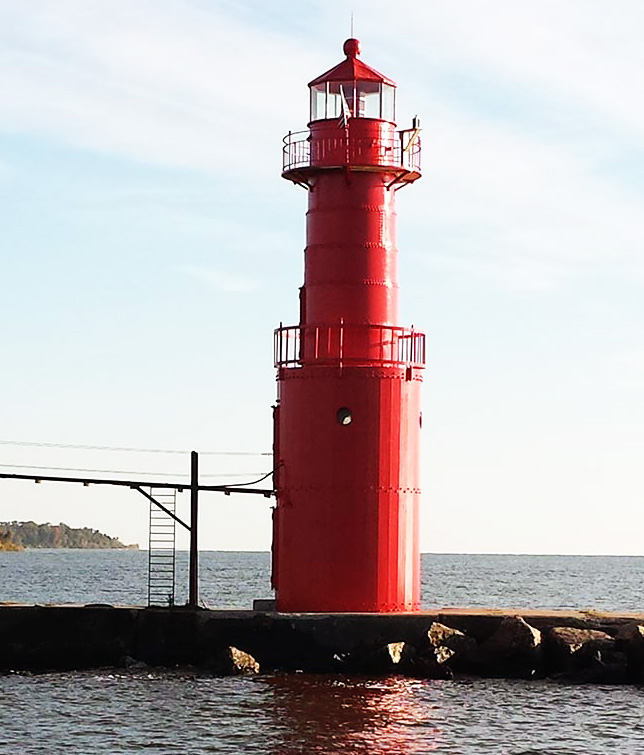 Cool Temperatures, Magnificent View - Algoma's Pierhead lighthouse has a fresh coat of paint and stands in beautiful contrast to the clear blue sky. Eagles have been spotted cruising the open waters and even the Snowy Owls are making appearances. The ice shelves along the beach change almost daily and are certainly a site to behold.