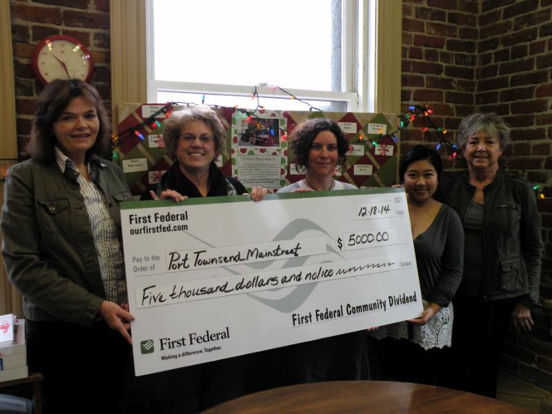 Laurie Liske, Branch Manager of First Federal (second from left) presents a check to the Port Townsend Main Street Program as part of the Main Street Tax Incentive Program.