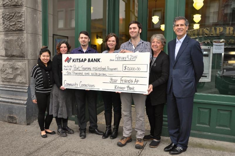 Main Street Board & Staff accept $10,000 Tax Incentive contribution from Steve Politakis, CEO Kitsap Bank. Photo by Elizabeth Becker, Seaport Photography