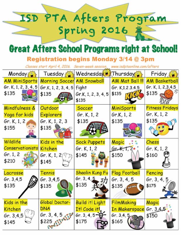 - For complete information on our PTA Afters Program, including our Afters Policy, please visit the ISD website, under "PTA" tab, web page "PTA Before & Afters Program."