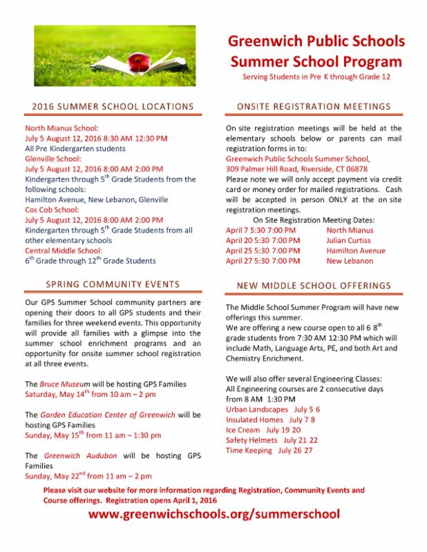 On-site and online registration for the Greenwich Public Schools (GPS) 2016 Summer School program is now open.
