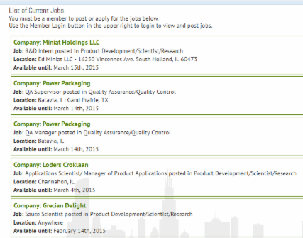 After a successful December event, the Professional Development Team is mapping out our next soft skill workshop for career guidance and continuing education. Some of the topics/themes we are considering are Conflict Resolution, How to Handle a Difficult Boss, Effective Public Speaking, Effective PowerPoint Presentations. Stay tuned over the upcoming months. Technical Sessions The Professional Development Team is also currently firming up details of our next Technical Session scheduled for April 30. The event will be held at Imbibe's new state-of-the art beverage innovation center in Niles. We will be focusing on a Beverage/R&D theme surrounding coffee from roast to cup and the sensory aspects of alcohol and liquor. Speakers will be from Imbibe and Diageo respectively. Mark the date on your calendars. This is going to be another fabulous event. Employment/Career Center If you have a job opening at your organization, you may post it at our Professional Development-Career Center page of the web-site. It is free and very easy to post a job. If you need assistance, please contact any of the team members below. Download article Sincerely, Susan Abraham-Rivera, Ph.D. , Professional Development Chair, AgriFIS, Inc. Email: susan@agrifis.com Phone: 847.942.4136 Michael Gross, Career Guidance and Continuing Education sub-committee chair, Clutch Global Logistics Email: michael.gross@clutchgl.com Phone: 630.346.4791 Shannon Wilson, Tate and Lyle Email: shannon.wilson@tateandlyle.com Phone: 847.448.4884 Leslie Taylor, IOI Loders Croklaan Americas Email: leslie.taylor@croklaan.com Tel: 815.730.5208 Michael Mastrangelo, Employment/ Career Center sub-committee chair, LifeSpice Ingredients Email: michael@lifespiceingredients.com Tel: 773.710.4701 Zeek Agosto, Technical Sessions sub-committee co-chair, Univar Email: eagosto76@sbcglobal.net Phone: 312.399.8308 Maureen Oskielunas: Technical Sessions sub-committee co-chair, Kraft Food Ingredients Email: maureen.oskielunas@kraftfoods.com Phone: 773.456.0698 Jeffrey Jendryk, CDM Smith Inc. Email: jendrykjp@cdmsmith.com Phone: 312.802.9936 |