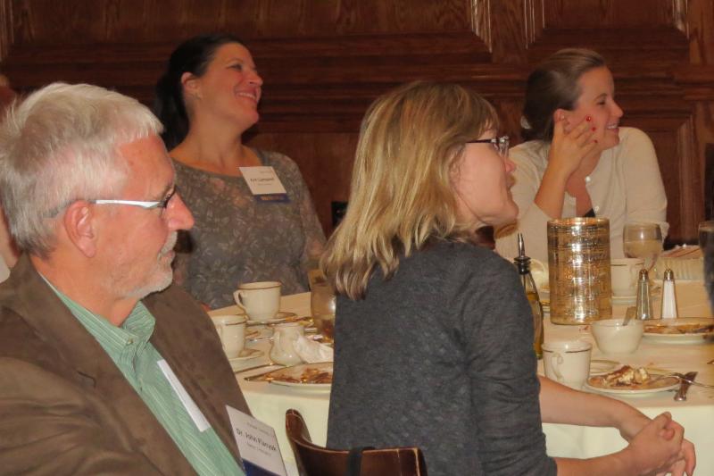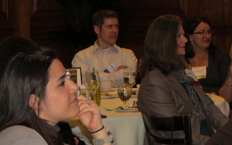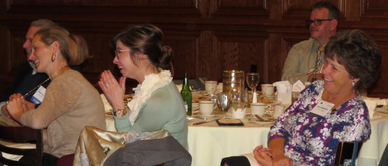 After sharing a delicious family-style meal at Maggiano's, the Second City players took the stage and led the audience through several games, scenes, and sketches. Audience members were encouraged to participate, shout out suggestions, and cheer along the actors. Two of our guests even got to perform a "Dr. Know-It-All" sketch on stage with the performers!