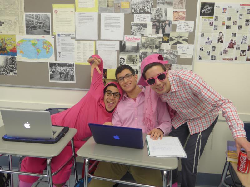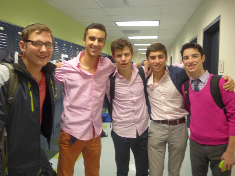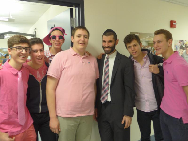 Wednesday was Pink Day around the country and the halls of TABC were filled with the boys, faculty, rabbeim and staff sporting their pink basketball socks and water bottles which were donated by a TABC family. Due to the tremendous efforts of the Pink Day committee, over 250 pairs of socks were sold. After a brief program, everyone gathered in the gym, along with 29 dozen pink donuts, to take a group photo. We are thrilled to announce that the committee raised over $5000 for Sharsheret.