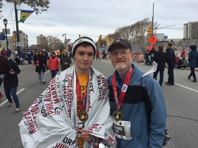 This past Sunday, TABC Track Captain, Avigdor Schiffman, and his father, Dr. Jonathan Schiffman ran in the Philadelphia Full Marathon. Showing his TABC pride, Avigdor ran wearing a STORM shirt and snow hat. Many runners dressed as superheroes during the race, all dressing in colorful, muscular, winged costumes, but there was one hero disguised as a caring father dressed in regular running clothes. Dealing with a painful knee injury, Avigdor was forced to slow to a walk in the 22nd mile, resulting in Dr. Schiffman abandoning his goal of running the full 26.2 in four hours so he could help Avigdor finish the race. Together they covered the last few miles and when they reached the finish line they broke into a run crossing as a team!