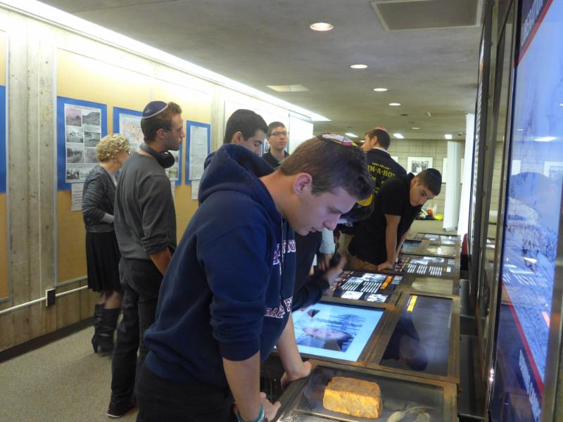 Mrs. Reichardt's 12th grade Holocaust Studies class visited the Holocaust Museum and Resource Center at Rockland Community College last week. The students had an opportunity to view a video presentation, collaborate in a group workshop about choices people had to make - whether to be a bystander or a rescuer - and examine various artifacts donated by survivors and others. The highlight of the afternoon was the time that students spent hearing from and interacting with a survivor, Sonia Goldstein, who truly inspired the boys. At TABC, the Holocaust Studies Program, run by Mrs. Cary Reichardt, makes every effort to have our students interact with survivors who wish to tell their stories in order that they are never forgotten. For more photos, click here.