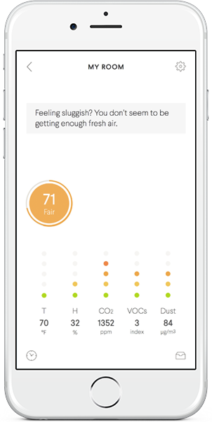 The monitor will track the air quality levels and then send you recommendations through the app on your phone to help you change your behavior.