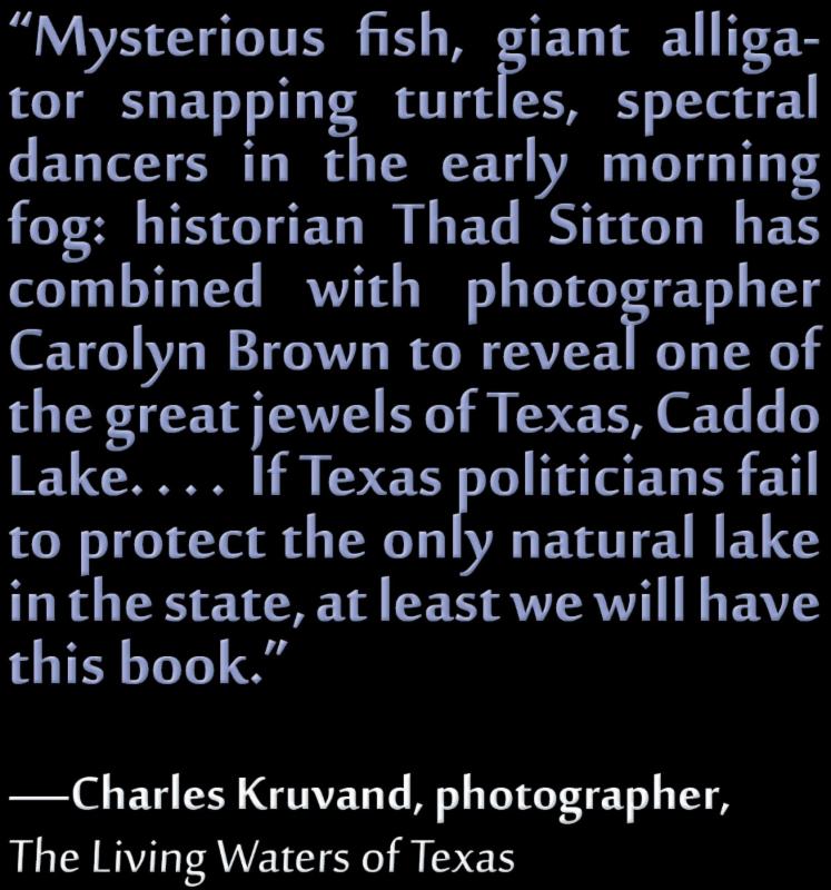 In a stunning tribute to one of Texas' most enigmatic waterways, a veteran East Texas historian and a professional photographer have together created an homage to a lake like no other. This half Texas, half Louisiana swampy labyrinth of bald cypress and water plants is filled with mystery, legend, and a staggering amount of biological complexity.