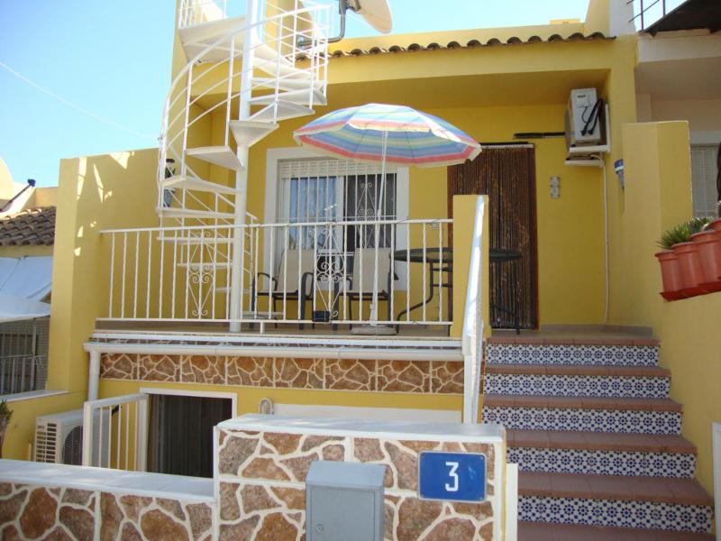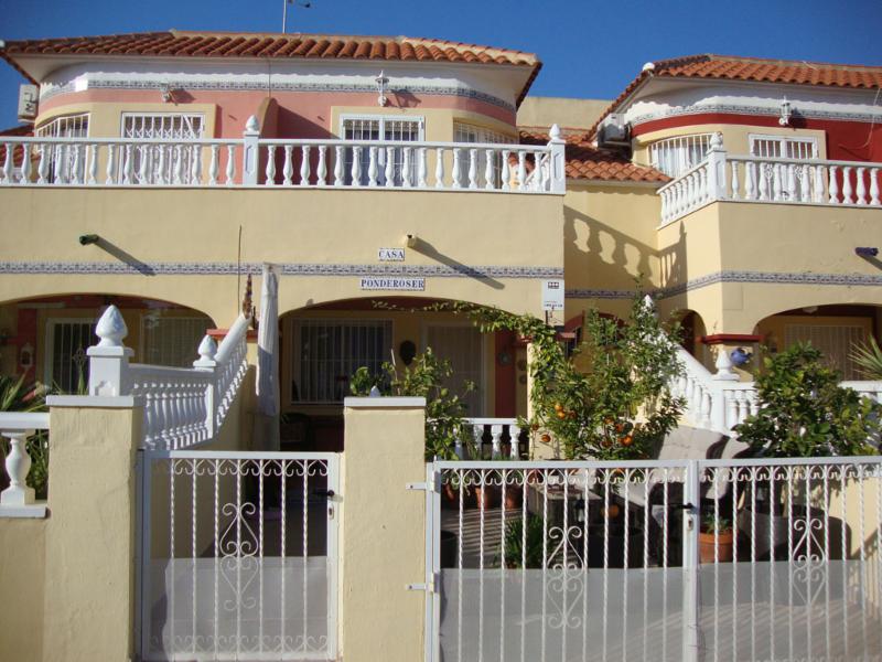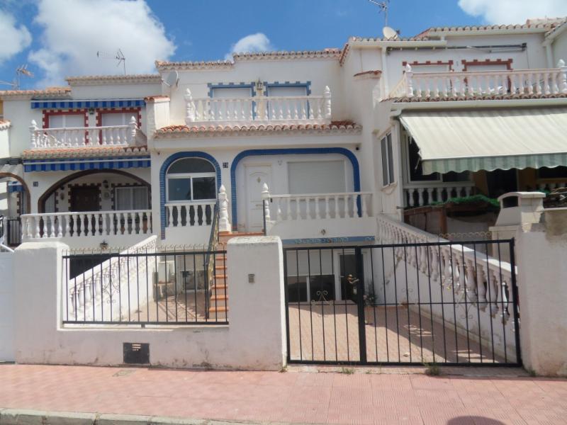 Superb 3 bed /2 bath part furnished Lola townhouse with communal pool just a short walk to shops, bars and restaurants in Benijofar. Access to pool form rear of property, many extras.
