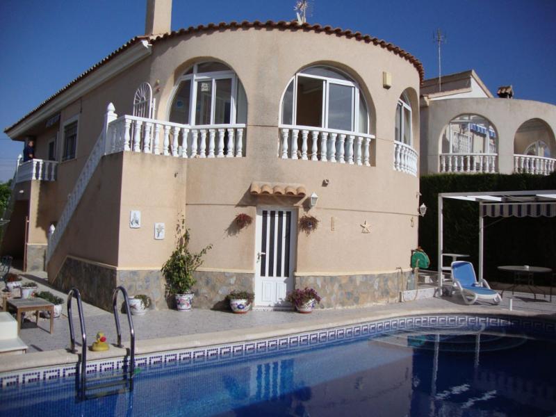 Superb spacious 3 bed/2 bath detached villa with private pool situated in Lo Crispin, Algorfa and walkable to excellent amenities in nearby Ciudad Quesada.Beautiful conservatory and many extras.