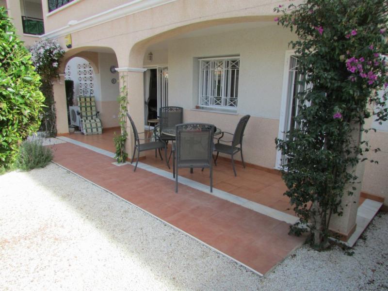 Immaculate 2 Bed 2 bath fully furnished ground floor apartment on the best gated community in Costa Blanca with a communal pool walkable to amenities.