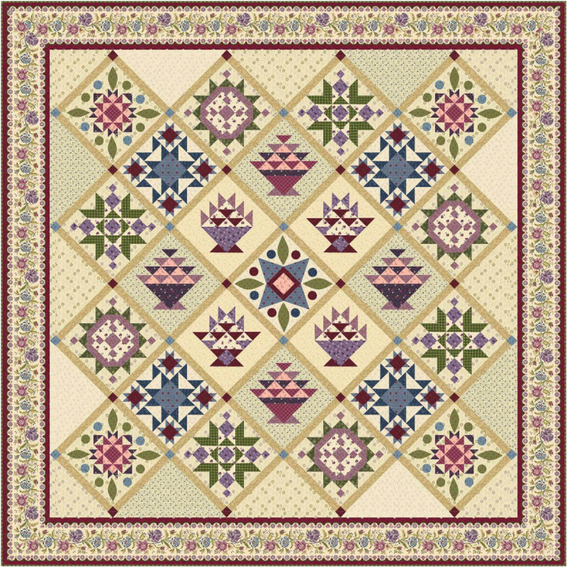 Here's a great 7-part BOM project, or purchase the Complete Kit! Everything is included: Seven-pattern set with Iron-on transfers, Fabric, Floss, Cutting Diagrams, Lightweight Fusible Pellon, Pattern, Backing, and Binding!