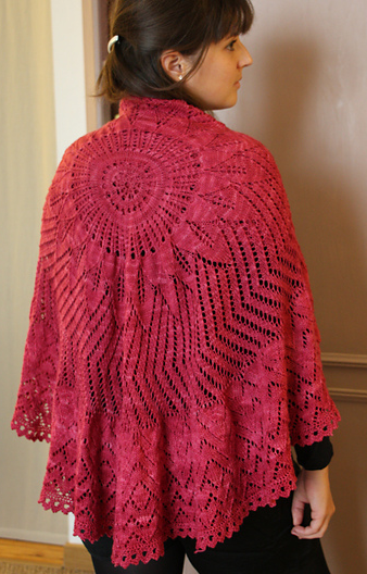 This traditional circular lace shawl pattern offers an option to work in a heavier yarn to use as a blanket. Camille, who knit the project in this photo, lives in Paris and has an online store, Le Chat Qui Tricote. Ooh La La!