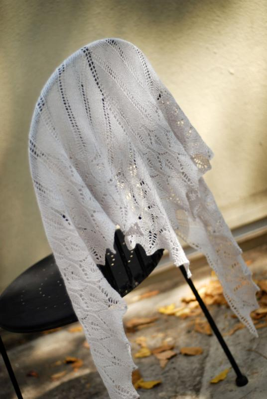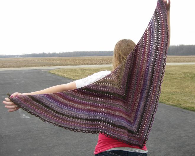 This pattern is a beginner triangular lace shawl pattern with a crocheted edge.