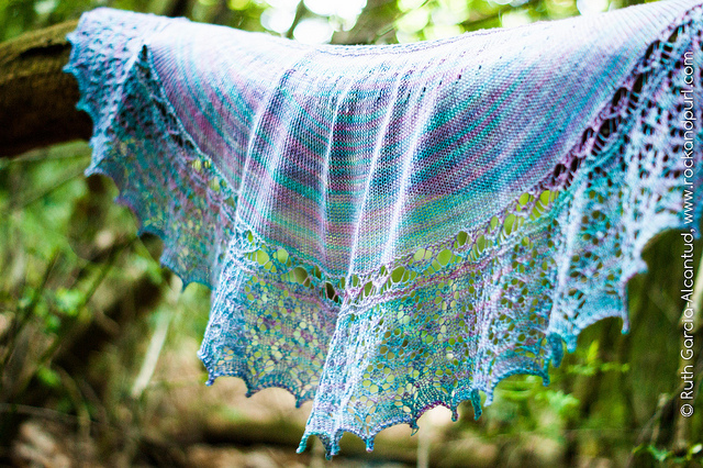 Probably the most common shawl shape, triangular shawls are generally worked from the top down, starting with just a few stitches and using increases (most often yarn-overs) to create the shape.