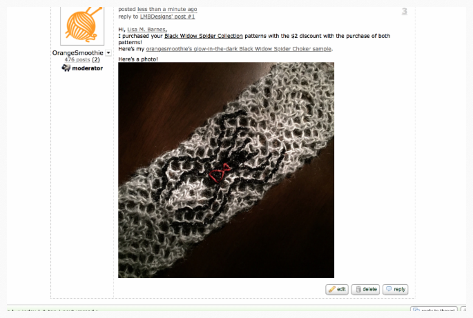 Now that you're learning about Ravelry, visit the LMB Designs Ravelry group and introduce yourself, post photos of your finished projects and ask questions. And for those of you who participate, you will be eligible for fun drawings for prizes! Keep an eye out for more details in the group!