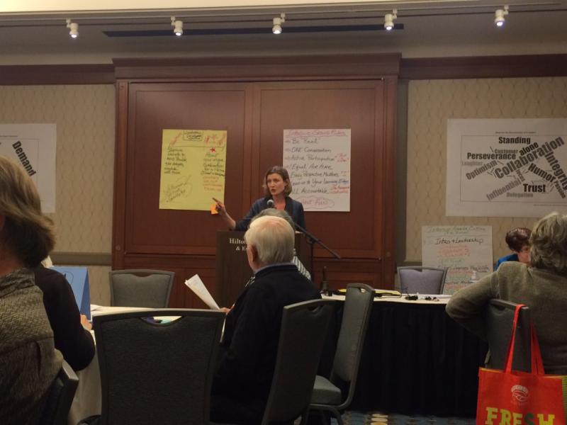 Presenting the result of group discussions in the From Apples to Zukes: Creating the Best with Fresh produce department intensive at Organicology.