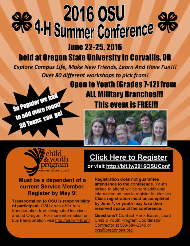 Every summer we are able to send a delegation of military connected teens to this awesome event on the Oregon State University campus! This year they are asking for help designing the event shirt.