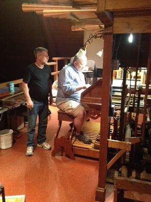 Ventura parish marks 125th year with restored pipe organ, festive event St. Paul's, Ventura, celebrated its 125th anniversary on Sept. 15 by unveiling its restored pipe organ, holding a parish-wide barbecue, and inviting members to tell their church stories on-camera by completing the phrase "St. Paul's is where ..." The parish preschool also invited its pupils and their families to the event. Above, the Rev. Susan Bek, rector, celebrates the Eucharist. At right: organ builder Manuel Rosales (at keyboard) works on the Felgemaker pipe organ, built in 1899, one of the oldest in Ventura County. Rosales, who built the organ at Disney Hall and many others around the Southland, restored the St. Paul's organ and its 1,1444 pipes. He began the Sept. 14 celebration by explaining the restoration to the congregation. Below: Canon Jerome Kahler, retired rector, tells his story of St. Paul's.