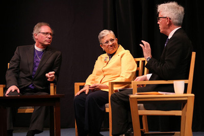 A second panel, featuring Fritz Coleman, Bishop Marc Andrus of the Diocese of California and Mary Nichols, chair of the California Air Resources Board, considered reclaiming climate change as a moral issue.