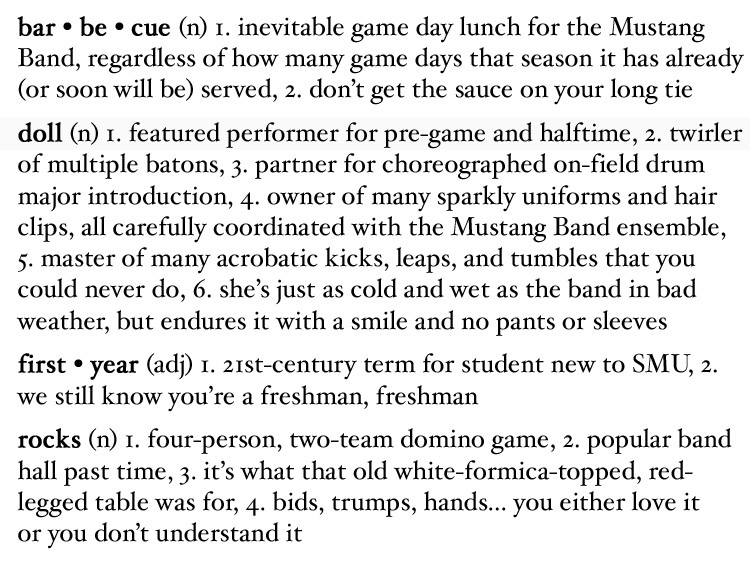 | | In this Issue | 1. Board Members Wanted 2. Spring Meeting and Picnic May 2 3. Mustang Band Photo Contest 4. Social Media Update 5. SMU Going to the Dance 6. Twirler Retrospective 7. Monthly Lexicon 8. Nostalgic Photos