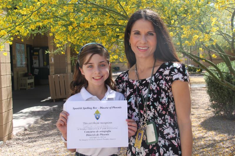 Our own Sofia C. (4R) was the winner of the Diocesan Spanish Spelling Bee last week! She competed against nine other 4th grade students from the Diocese. She did an amazing job as they went 21 rounds! She also spelled all the words using the Spanish alphabet (students have the option of using English alphabet). This is the second year in a row we have had a 4th grade student win the Diocesan Spanish Bee.