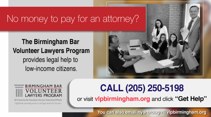 February 27th is Project Homeless Connect and attorneys will be needed to help Birmingham's homeless citizens overcome debilitating legal issues. Please e-mail Heather Bussey if you would like to volunteer.