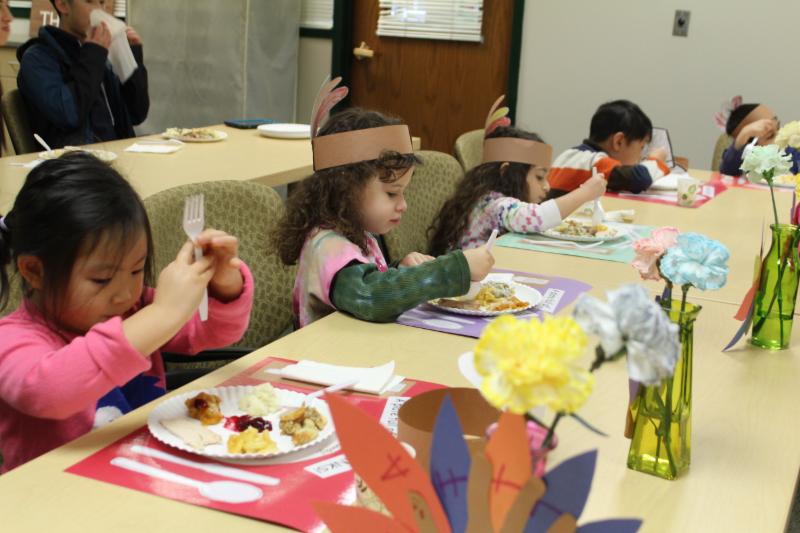Glenbrook North's little Spartans - turned pilgrims and Indians - dined on a classic Thanksgiving meal at school last week, celebrating the holiday by feasting on turkey, cranberry sauce, stuffing, green beans, potatoes and pumpkin pie they made themselves.