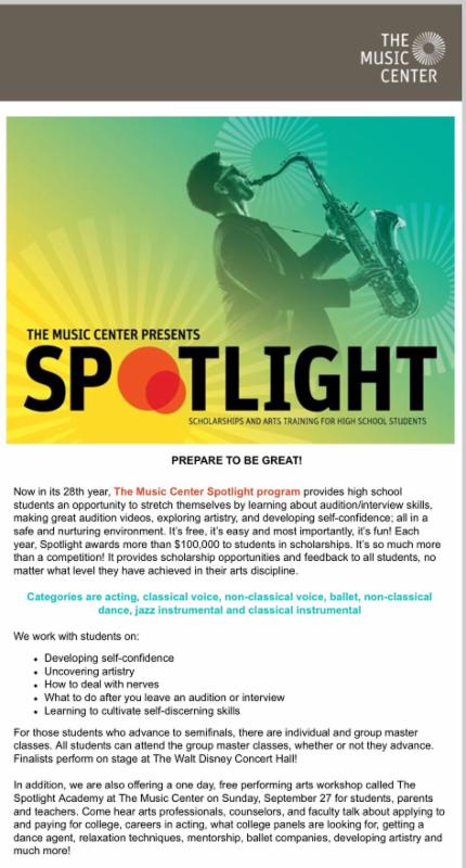 THE MUSIC CENTER SPOTLIGHT PROGRAM