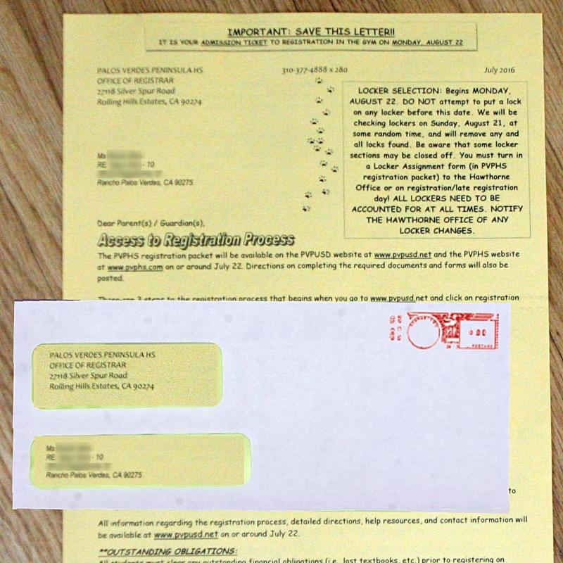 Families that have not received the letter or who misplaced the letter must contact our registrar Marie Blackwood at blackwoodm@pvpusd.net this week for instructions on obtaining a replacement letter.