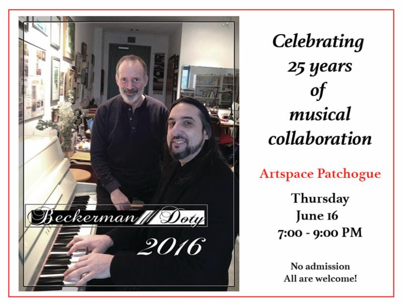 Howard Beckerman and Tru Doty: Celebrating 25 Years of Musical Collaboration on Thursday, June 16 from 7:00 to 9:00 PM at Artspace Patchogue. All are welcome to attend this free event.
