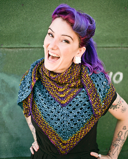 Caitlin ffrench's fun and colorful shawl pattern, Distinction, uses one of our new favorite Malabrigo yarns, Mecha. Mecha is a bulky weight, single ply, with beautiful saturated colorways. The shawl pattern calls for 3 skeins of Mecha, and will knit up quickly on US size 11.