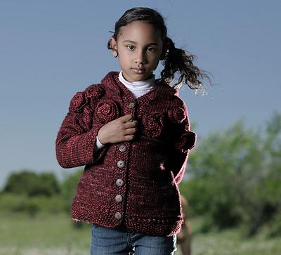 This adorable, unique child's sweater is knit out of bulky weight Mecha, another superwash yarn. Red Velvet, a pattern included in Malabrigo's fabulous new book Ninos, is a sweater that would thrill any little girl!