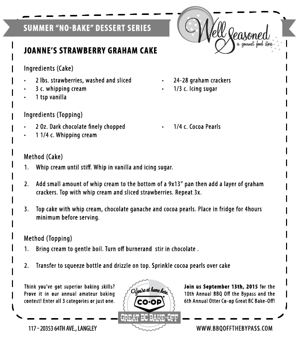 Our countdown continues with our 4th Summer "No-Bake" Dessert recipe. We are counting down the weeks until the10th Annual BBQ *Off* the Bypass and the 6th Annual Great BC Bake Off.