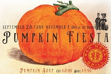 > Red Mesa Grill is featuring a Pumpkin Fiesta through Nov. 1, including Pumpkin Soup, Pumpkin Queso Fundido, Pepita Crusted Chicken, Pumpkin Fajitas and Pumpkin Fried Ice Cream. Details on Facebook.