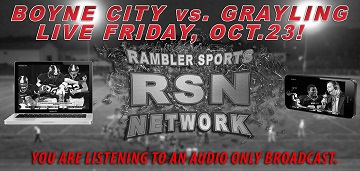 Friday's game featuring the 7-1 Ramblers at the 6-2 Grayling Vikings will be a live audio only broadcast on the Rambler Sports Network. The broadcast goes live at 6:55 p.m. The Ramblers are ranked 6th in the state for Division 6, and the game has major playoff implications for both teams. The broadcast is available as always by clicking the game graphic at www.boyne.k12.mi.us. As an audio-only broadcast, there will be NO password to listen. News-Review Prep Football page.