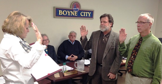 City Clerk Cindy Grice administered the oath of office to City Commissioners Hugh Conklin and Tom Neidhamer Tuesday night. Neidhamer was reelected to a second term and Conklin was elected to his first term in the November 3rd election. A few minutes after the oath of office was completed, Mayor Ron Grunch said he did not wish to serve another term as mayor and nominated Neidhamer to replace him. His suggestion was approved unanimously. The other commissioners expressed their thanks to Grunch for serving as mayor for the past four years. News-Review story.