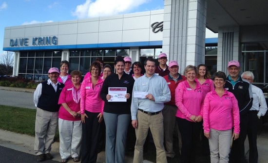 For the month of October, Dave Kring Chevrolet-Cadillac joined the national Chevrolet and American Cancer Society efforts: Making Strides Against Breast Cancer (MSABC) to end the fight against breast cancer. In this photo, Dave Kring staff stand proud in their pink attire as they present a check for $5,130 to Heather Dixon of the American Cancer Society. Dave Kring donated $50 from every new and used vehicle sold during the month. Inspiring the community to join in, Dave Kring offered custom Chevy bowtie decals for every $5 community donation.