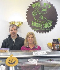 Our specialty is smoked fish, shrimp, pulled pork and homemade fish and salmon dips made fresh on site. We also carry a lot of Michigan made products, such as meat spices, maple syrup, fudge, and a variety of barbecue sauces. News-Review story: Big E's off to a smoking start. Photo courtesy of the News-Review.