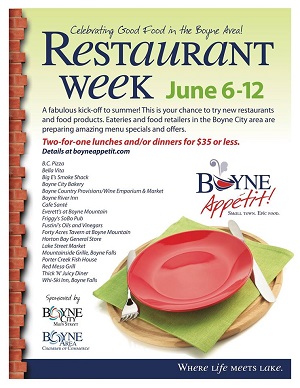 The Boyne Appétit! initiative is moving ahead in a big way with the unveiling of a new website and the list of 18 participants in Boyne Area Restaurant Week. The new website designed by Appétit! coordinator Cindy Janssens, can be seen at www.boyneappetit.com. Restaurant Week will be held June 6-12. This is going to be a fabulous kick-off to our summer season. Restaurants, bars, delis and sandwich shops are all offering specials: Two-for-one prix fixe meals for under $35 at large restaurants and more great specials from the others. Here is the list of all 18 participating restaurants and markets - including their special offers.