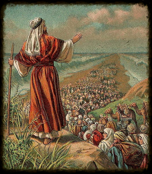 15 And the Lord said unto Moses, Wherefore criest thou unto me? speak unto the children of Israel, that they go forward: 16 But lift thou up thy rod, and stretch out thine hand over the sea, and divide it: and the children of Israel shall go on dry ground through the midst of the sea.