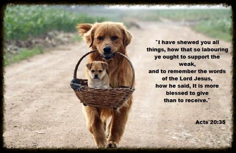 Acts 20:35 I have shewed you all things, how that so labouring ye ought to support the weak, and to remember the words of the Lord Jesus, how he said, It is more blessed to give than to receive. [Not just to give money or things but to give of our time, energy and talents to help others as well.]